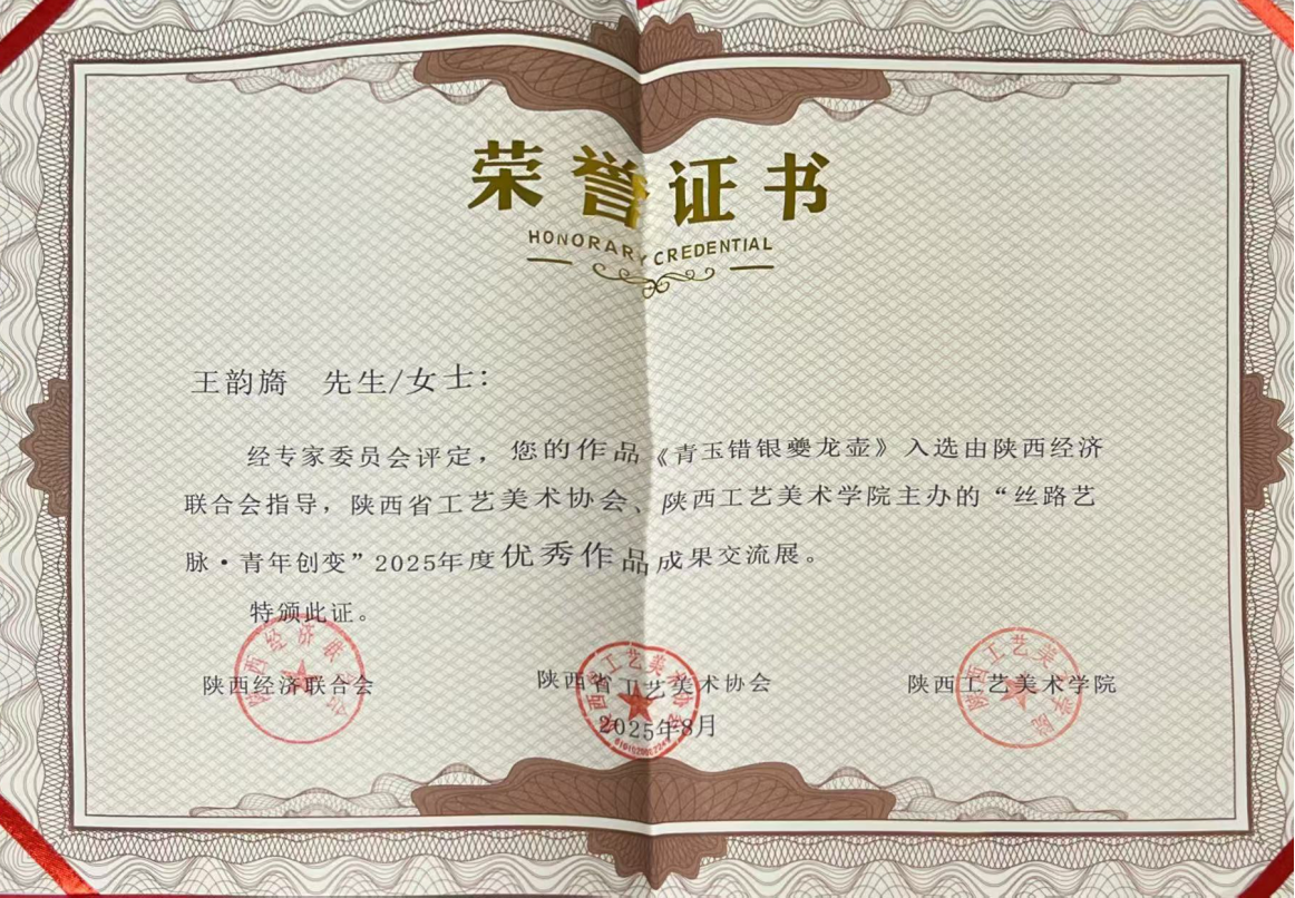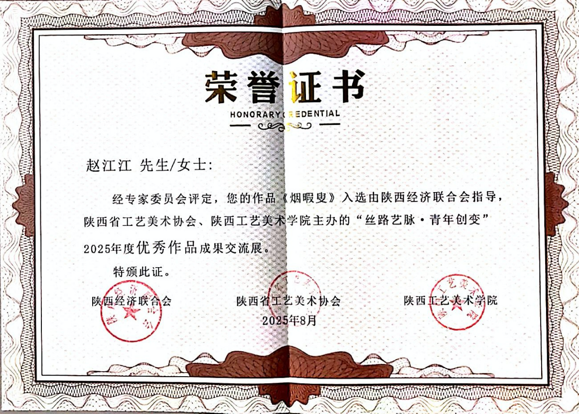 太阳成集团tyc33455cc官网教师赵江江、王韵旖的艺术作品成功入选“丝路艺脉·青年创变”2025年度艺术创作成果线上交流展。该艺术展览是陕西省工艺美术协会为庆祝“一带一路”倡议十周年,献礼 2025 年,特别策划青年艺术创作成果交流展。